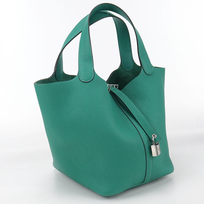 HERMES Pico Tan Lock MM Handbag /Taurillon Clemence Veil Jade Women |