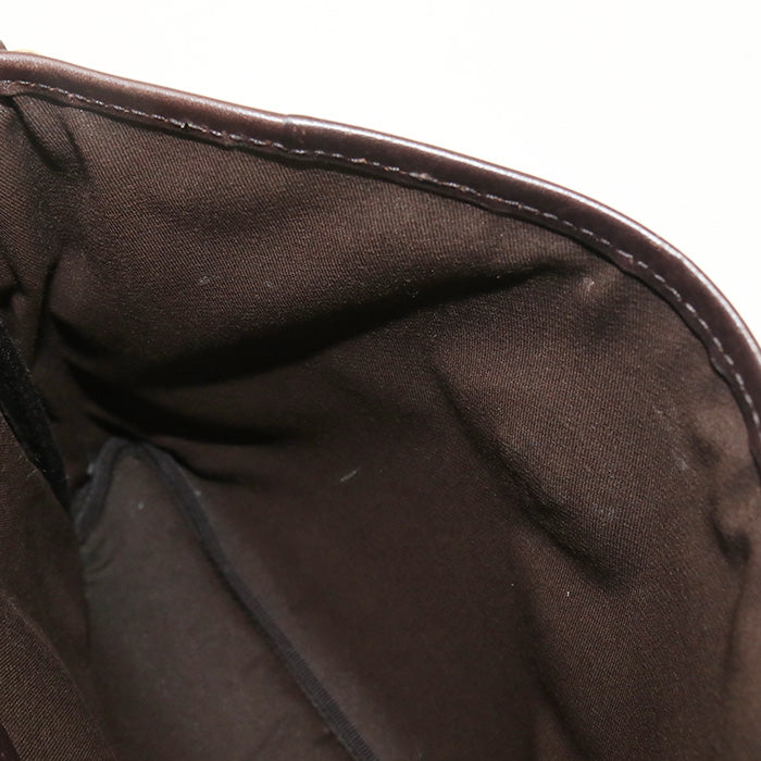There are slight signs of use. There are small scratches on the metal hardware. Exterior has stains and rubbing. There is a stain on the interior. There is Fluffing on the strap. |